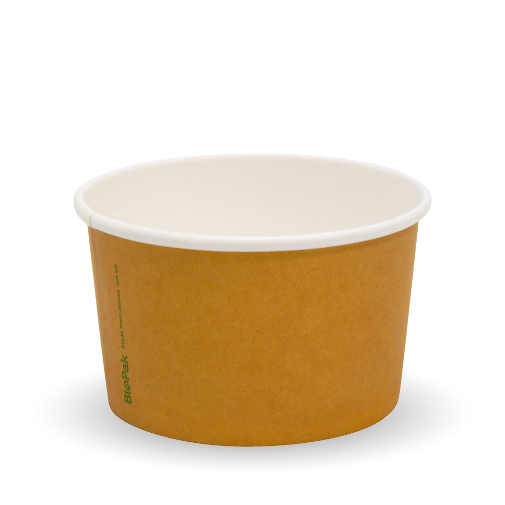 Available in cartons of 1000 and packs of 50 Our 240ml/8oz paper ice cream cups are made from FSC certified paper and lined with Ingeo a bioplastic product made from plants, not oil. They are perfectly portioned for serving ice cream, frozen yoghurt or gelato.