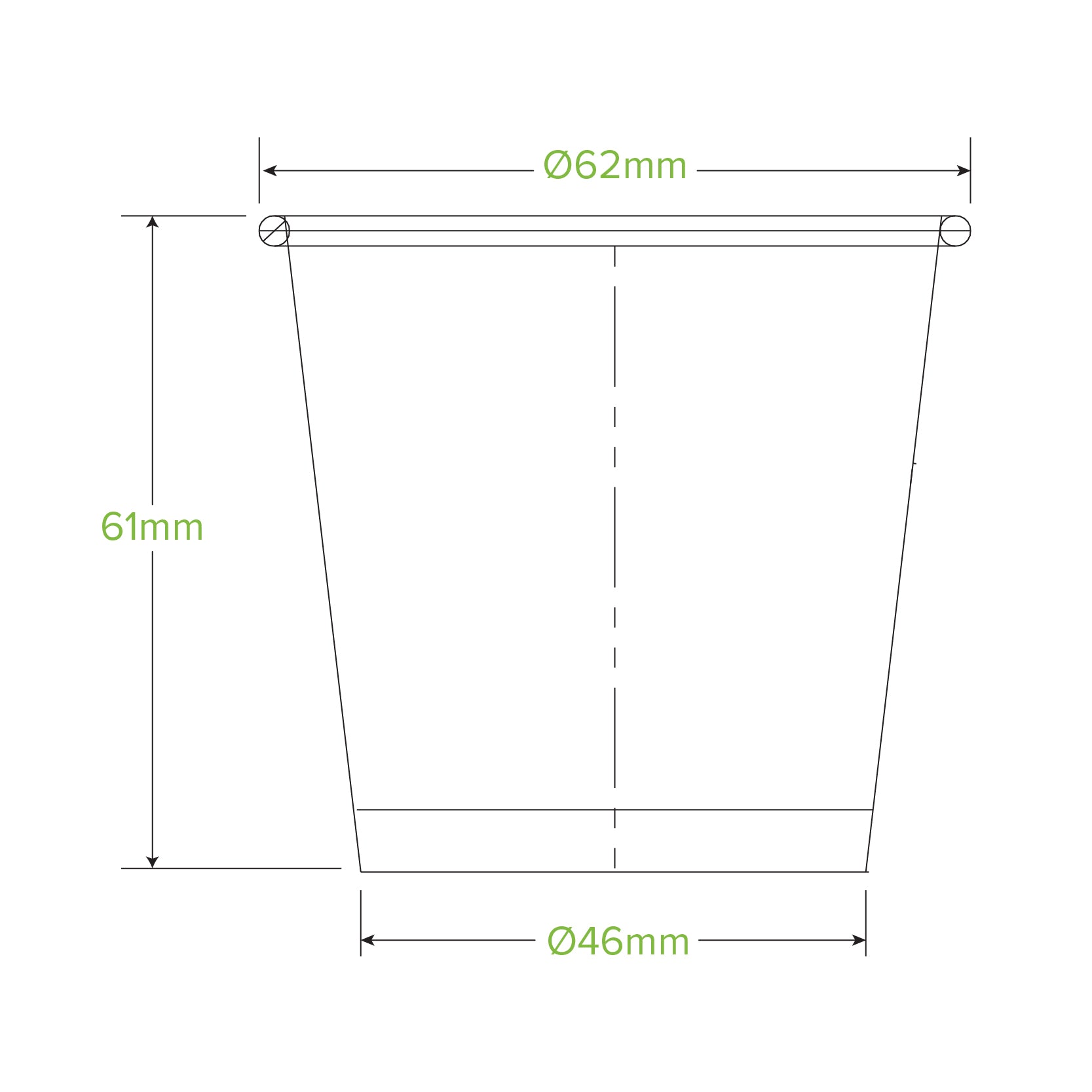 Dimensions top LxW (mm): 62x62