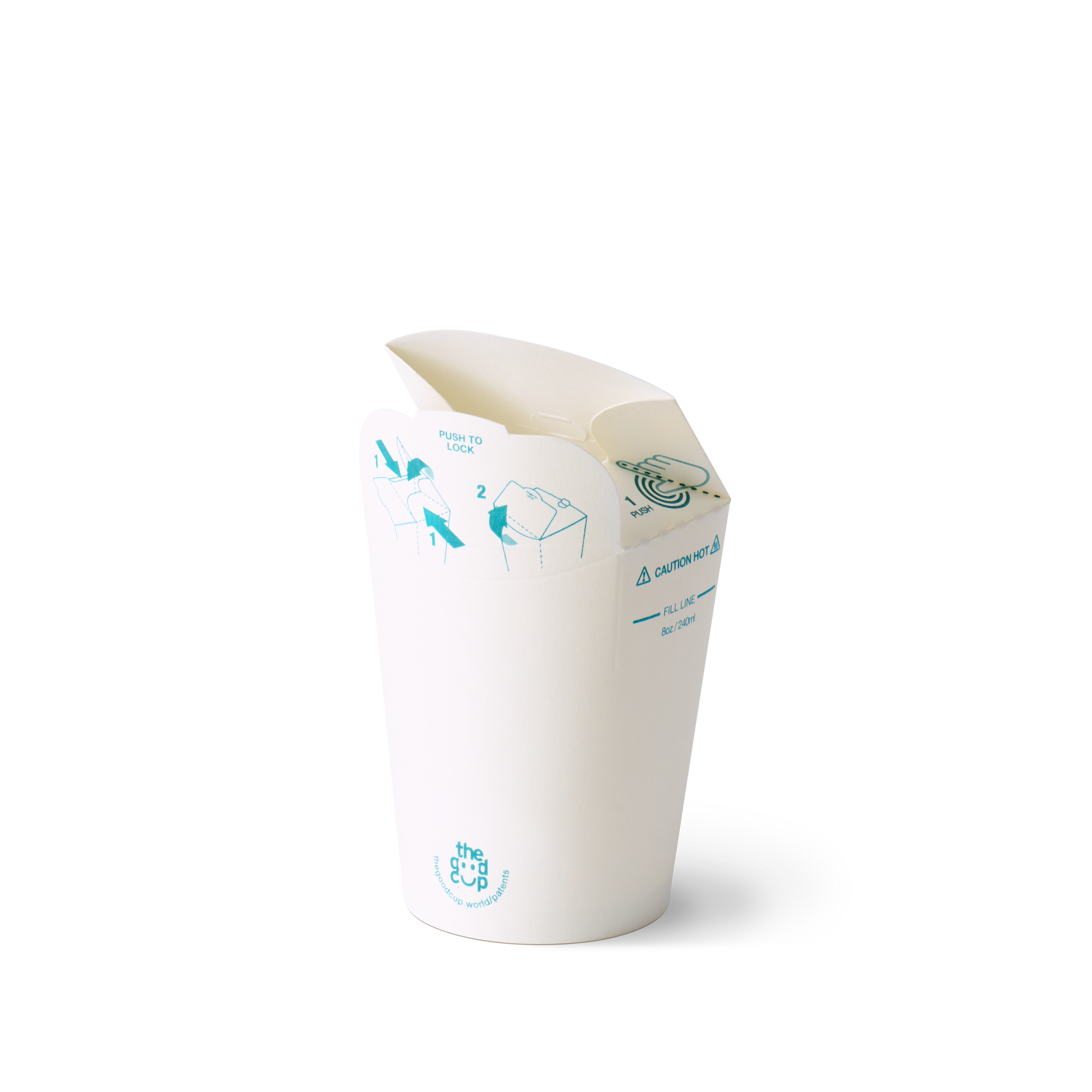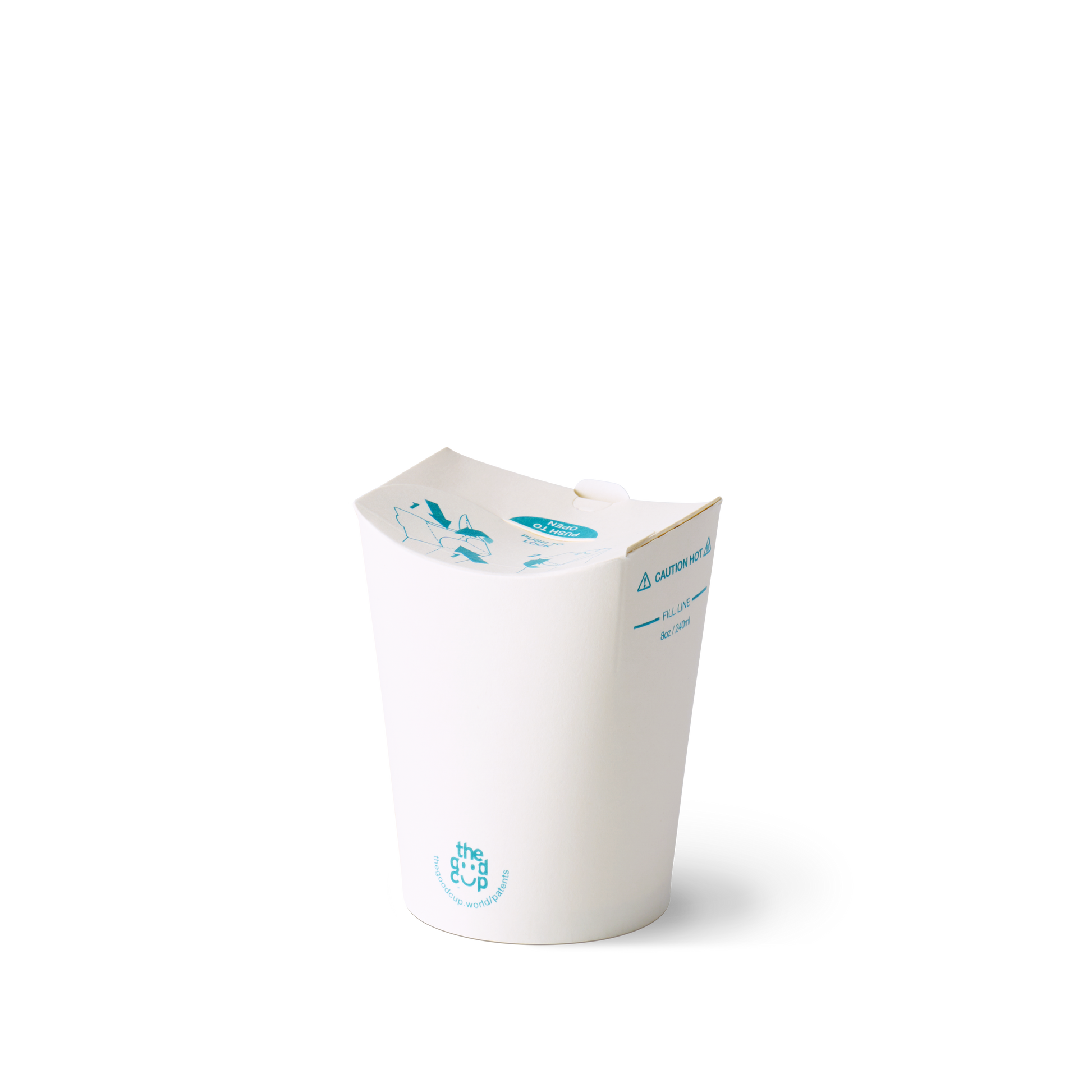 The Good Cup is the revolutionary hot beverage solution designed for cafés, caterers, and conscious consumers alike. Featuring an innovative foldable lid, this 8oz (240ml) White Kraft cup keeps your drinks secure without the need for a separate lid—saving you time, cost, and storage space.